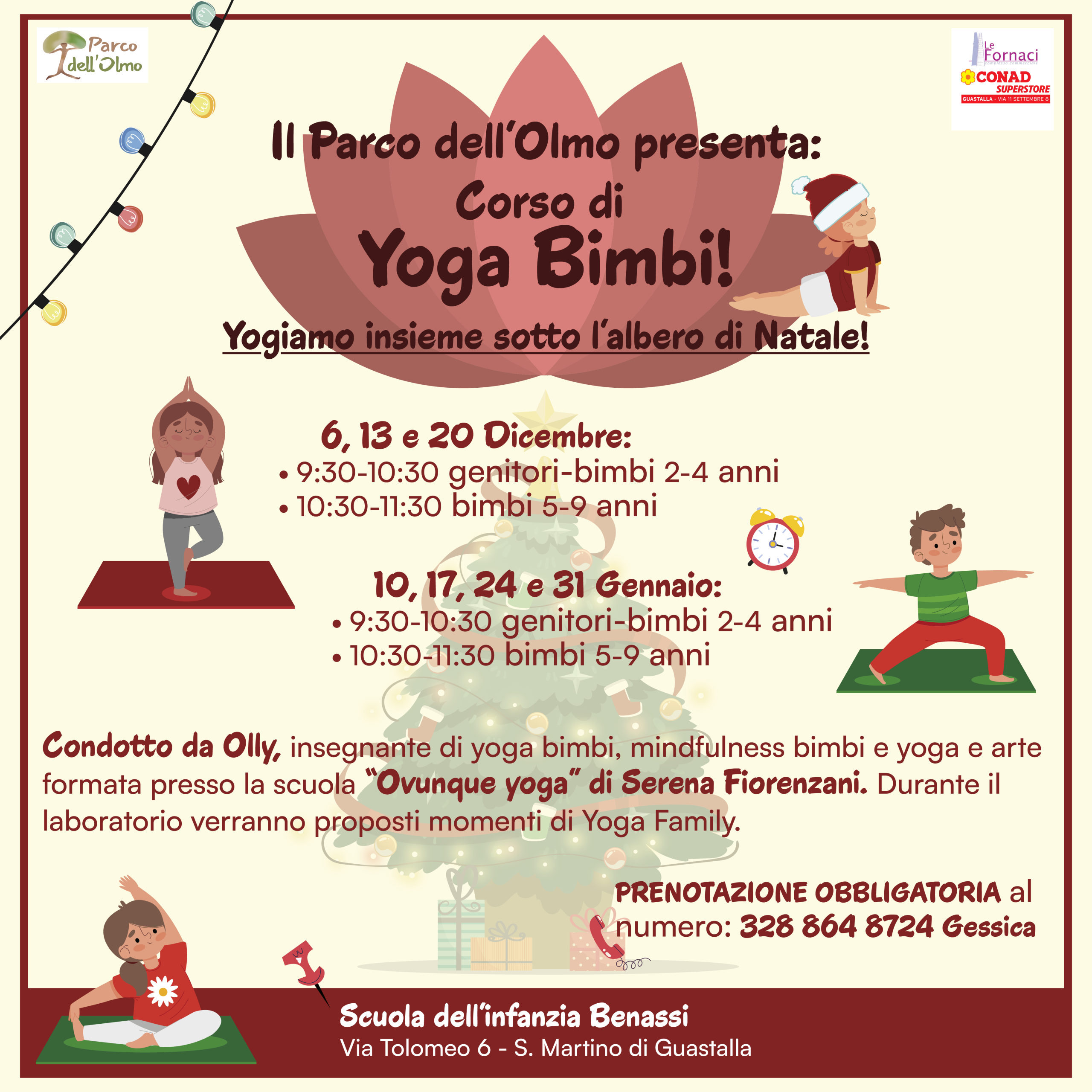 Il Parco dell’ Olmo, con il sostegno di Conad “Le Fornaci” presenta 🧘♀️ Corso di yoga bimbi ✨”Yogiamo insieme sotto l’ albero di Natale” 🎄